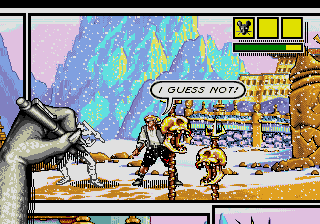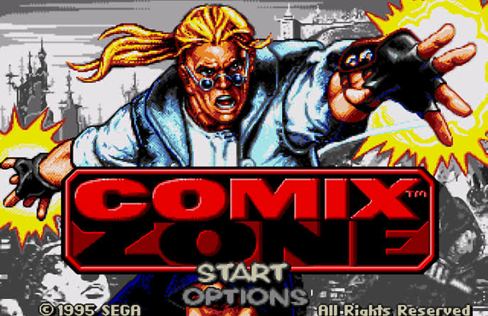 Em Comix Zone, você desempenha o papel de um jovem cartunista que foi de alguma forma transportado para uma de suas próprias histórias em quadrinhos por um cartunista malvado. Agora, para escapar, você precisa percorrer as páginas de sua história em quadrinhos e lutar contra suas próprias criações. Este é um conceito muito legal que foi executado muito bem. Você começa em algum lugar onde conhece uma garota que lhe dá algumas armas. .